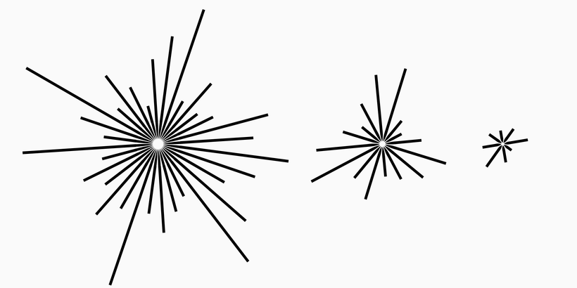 从功能上讲,星形图案是一个卡片的集合——可能是你当天要复习的一套卡片,或者是某本书的卡片,或者是你自己制作的一个卡片文件夹。每张卡片对应一条射线;每条线的长度代表一张卡片的间隔。一个密集的星形图案代表一个较大的卡片集合。