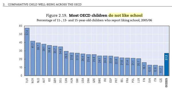 - 我的文章《为什么孩子讨厌学校》[4]并非旨在提供数据证明孩子讨厌学校。相反,文章假定这一点对读者来说是显而易见的,正如开篇所言:「孩子们不喜欢学校,他们很清楚原因」。文章的目的是分析导致学生厌恶学校的主要原因。见:为什么要研究显而易见的事情?