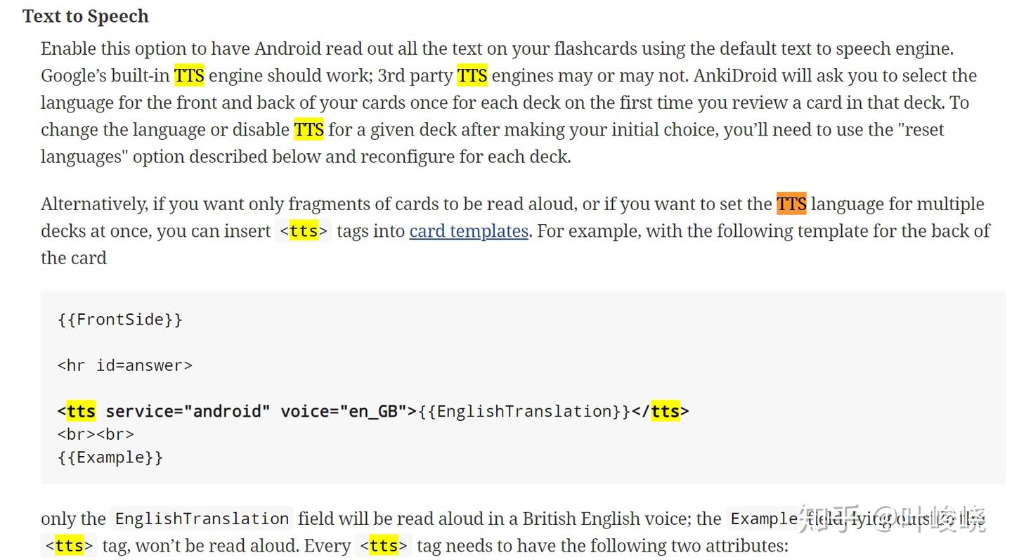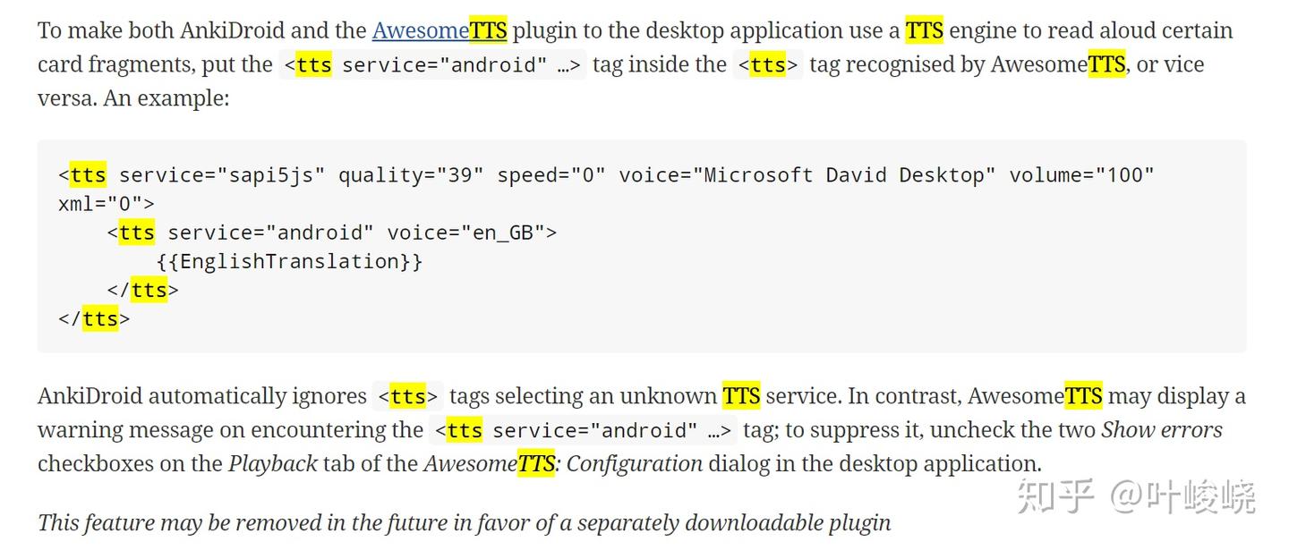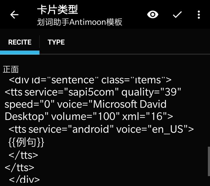 </tts>然后就实现了在电脑上使用 AwesomeTTS,在手机上使用 系统/Google 的TTS服务,并且可以针对特定字段。